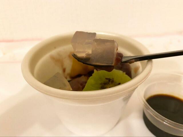「フルーツあんみつ」というネーミングですが、入っているフルーツはマンゴーとキウイ。