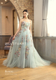 王道のAラインながら、チュールにレースを施したトレーンも印象的で、バックスタイルも抜かりなし!