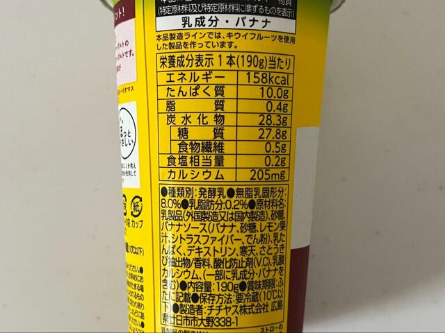 バナナ味のヨーグルトドリンクですが、バナナ感はそれほど強くなく、ヨーグルトを飲みやすく、なめらかにした感じがします。