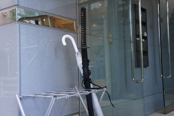 傘を名刀にくくりつけて置いておけば、剣豪の傘だと思われること間違いなし。「これを盗んだら斬り捨てられる…」という恐怖から傘泥棒は近づくことすらできません。もしも、刀ごと盗まれてしまった場合は大人しく泣き寝入りしましょう。