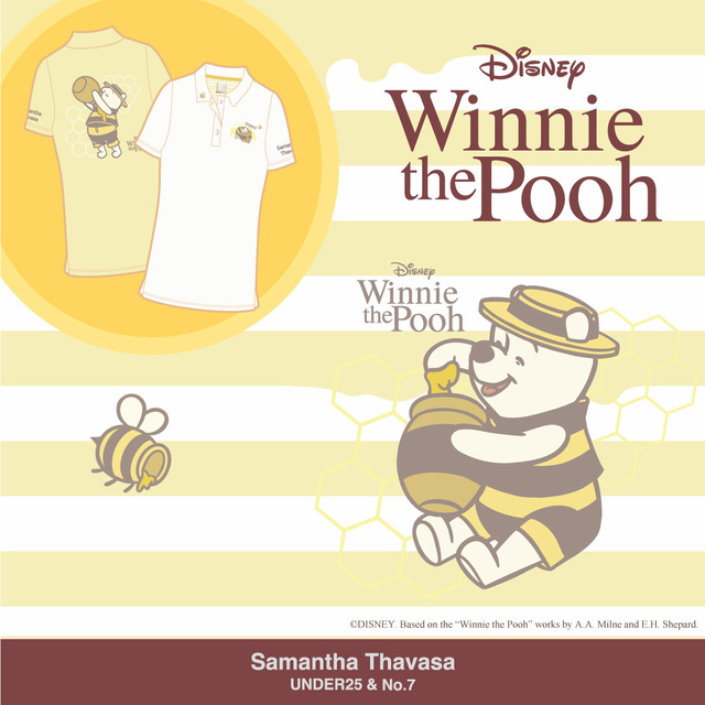 描き下ろしのハチミツを食べるプーをデザインしたポロシャツが登場。