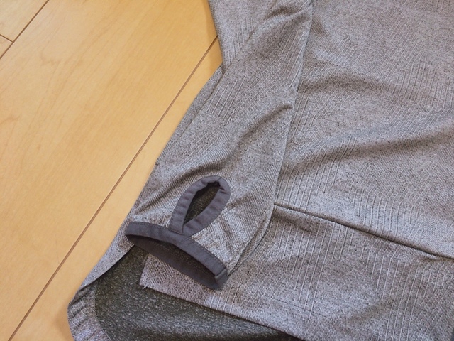 袖は長めで、手の甲まで隠せて親指を出す穴がついています。手もしっかり紫外線から守ってくれますよ。