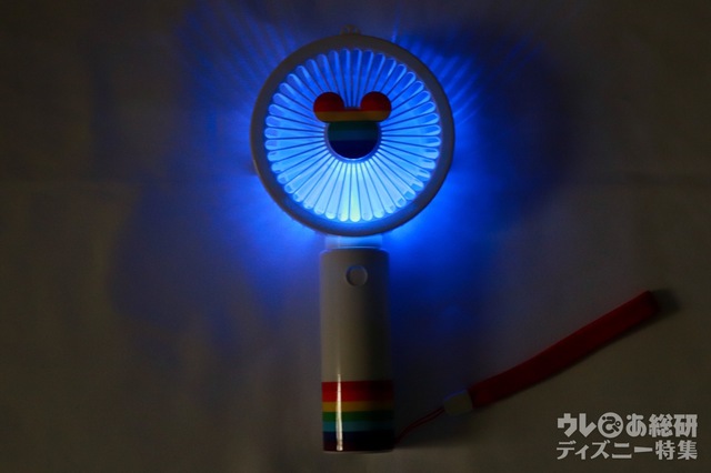 東京ディズニーリゾートにて2022年7月7日(木)に発売になった、虹色のミッキーシェイプが可愛い「ポータブルファン」。