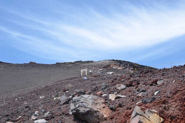 目指すは鳥居。手前の鳥居が九合目、奥の鳥居が山頂です!