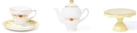 カップ&ソーサーやティーポット、スタンドなどが登場します。