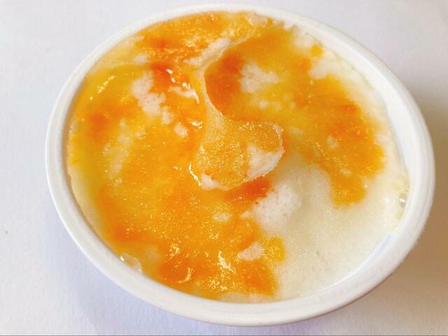 このかき氷、ヨーグルト味なんです!ほんのり甘みと酸味のある氷がおいしい!