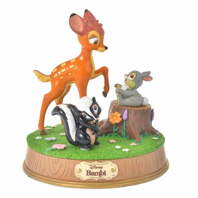 作品のロゴ入りの土台の上には、森の中で遊ぶバンビととんすけ、フラワーの姿が。