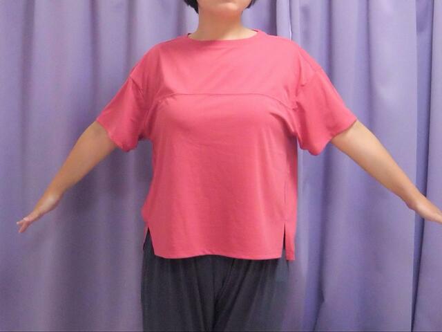 このTシャツを実際に着てみるまで、胸の上にステッチがある意味が理解できなかったのですが、「平坦なTシャツに表情を加える」「気になる部分から視線を逸らしてくれる」という効果があることを実感しました。