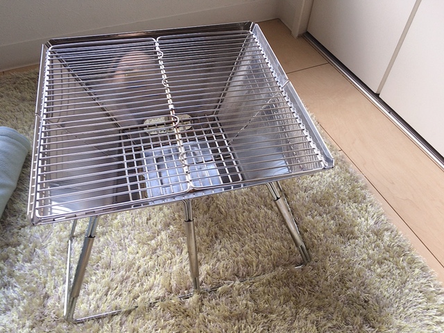 炭を入れ、目皿、焼き網の順に載せたら完成です!1分もかからず組み立てられました。