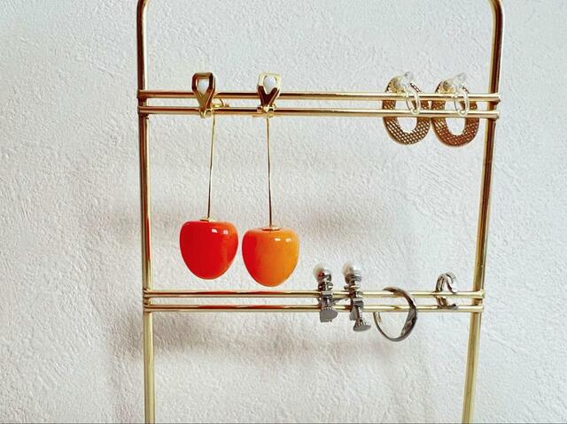 イヤリングやピアスを見せて収納できる「ピアス・イヤリングスタンド」は、ピアスやイヤリングの形状によっては収納が難しい場合もありますが、樹脂ノンホールピアスやクリップタイプのものは、簡単に収納ができました。