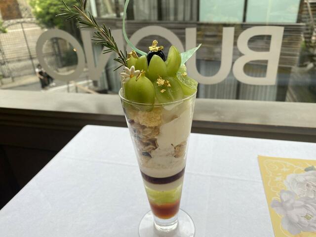 まずは、プレミアムシャインマスカットパフェからいただきましょう。