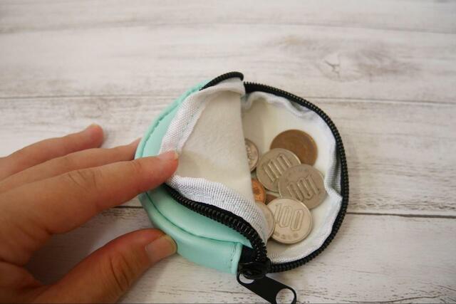 直径8.5×マチ1.5cmで、コインケースにも使いやすい大きさ。サイドまでファスナーが付いて、大きく開くので小銭を探すときに中が見えやすくて便利です。