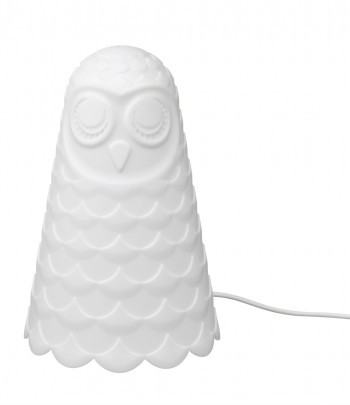 ふくろうが見守ってくれるような、やさしい明かりのテーブルランプ。明るすぎず、でも、絵本を読むには十分な明るさです。