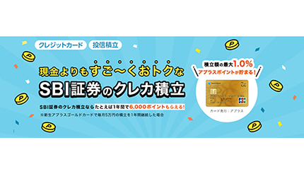 SBI証券は8月9日に、同社と新生銀行による金融商品仲介業務および銀行代理業のサービス提供を開始した。9月9日には、アプラスが発行する所定のクレジットカードを使って投信積立ができる「クレカ積立」サービスを開始する。