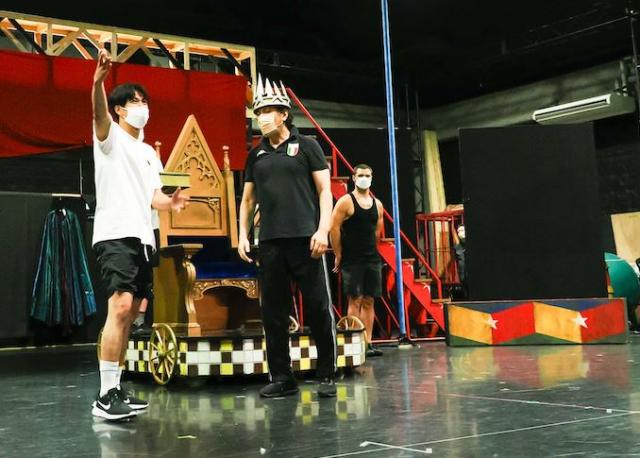 続く場面は、ファストラーダがチャールズとピピンが対立するように企む場面。大きなBOXを使ったイリュージョンや、ナイフ投げも見どころで、よりスムーズに展開してメリハリがつくように、ブラッシュアップしていく。