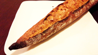 まずは“バゲットJOE”。国産小麦100%使用、長時間熟成発酵のバゲットは私の好きなタイプです。通常のバゲットと違いクープは1本なんですね。