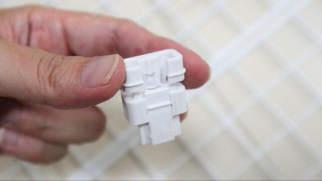 2つのワイヤーを挟んで中央の部分をスライドさせるだけで、簡単に固定できます。