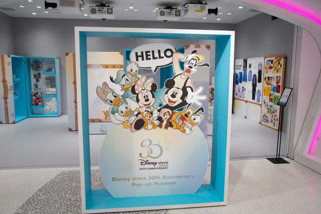 展示コーナーでは、ディズニーストアが日本に来てから30年間の歴史をパネルやグッズで紹介しています。