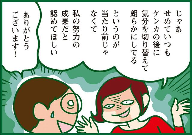 お互いに離婚経験のあるさるころ&ノダD。再婚後「離婚したくない!」という一心で「問題は、お互い我慢しないで解決する」を目指す。問題解決までを夫婦どっちもの目線でお届けします。今回は『妻の話し方が適当すぎると怒る夫の巻』の【話し合いの結果編】です。