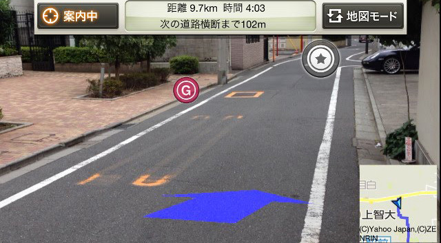 スマホのカメラに映る実際の景色に重ねて、進行方向を表す矢印や目印となるガイドポイントが表示されます。もはやここまでくると、道に迷う方が難しいかもしれません。
