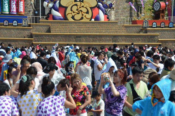 ランドの夏祭りを語るに「爽涼鼓舞」は外せません。和のお祭りをモチーフに、お祭りグランドマスターを決めるダンスコンテストです。昼と夜の二部制で、昼の「爽涼鼓舞“THE EMBU”」は4回の公演があります。