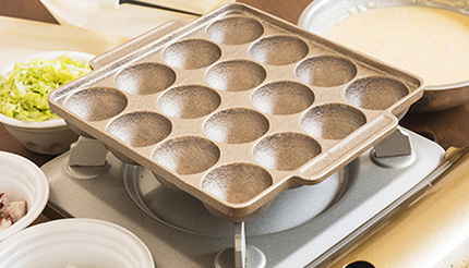 takottoは、熱伝導率に優れた銅合金を使用することで、四隅もしっかりと焼けて、焦げや焼きムラができにくく、3mmの極厚によって高い蓄熱性を実現し、外はカリッ中はふわっとした、お店でプロが焼くような本格的なたこ焼きを自宅でも作れる。