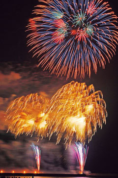 ★【水中】水中花火を実施 ★【海】海辺で行われる ★【音楽】音楽と連動した花火が打ち上がる ★【万発】1万発以上打ち上がる ★【滝火】仕掛け花火(ナイアガラ)実施 ★【競技】花火コンクール(競技会)実施 ★【川湖】川畔や湖畔で行われる