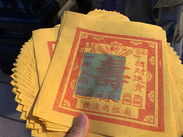 日本とは全く違った参拝の仕方なので、海外の寺院気分が楽しめます。まずは売店で「金紙」1包1000円と「線香」500円を購入。一緒に貰ったカードのようなお札は、お守りとして財布に入れておくと身を護ってくれます。