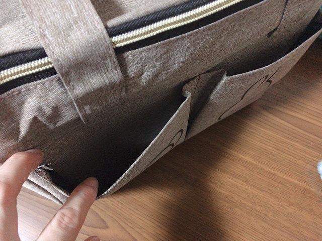 大きさは幅32.5×高さ24×奥行17cm。生地はポリエステルで程よい厚みで丈夫そうです。