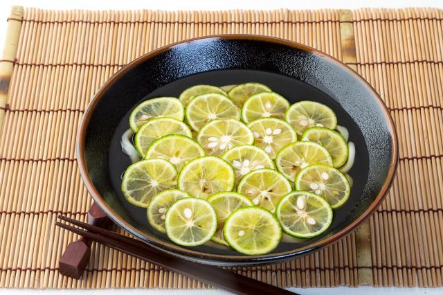 綾井「冷たいかけうどんにすだちを加えると、さっぱりと召し上がれます」