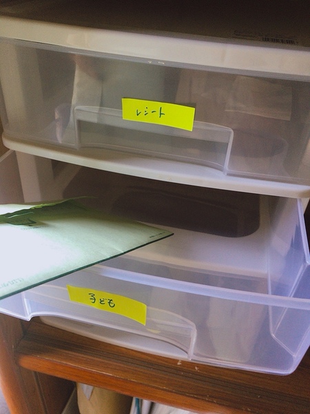 ファイルを使った収納法だと、入れるのも面倒ですし、出すときも書類が探しにくいですが、レターケース収納なら、引き出しの中を見れば入っている書類が一目瞭然なので、取り出すのも楽ちんです。