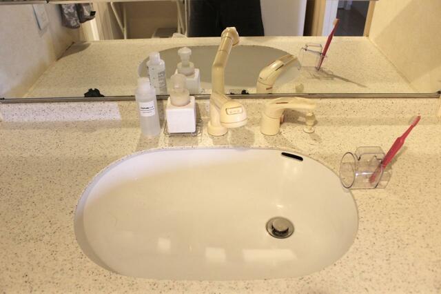 洗面台の上も必要最低限のもの以外は片付けてスッキリ!