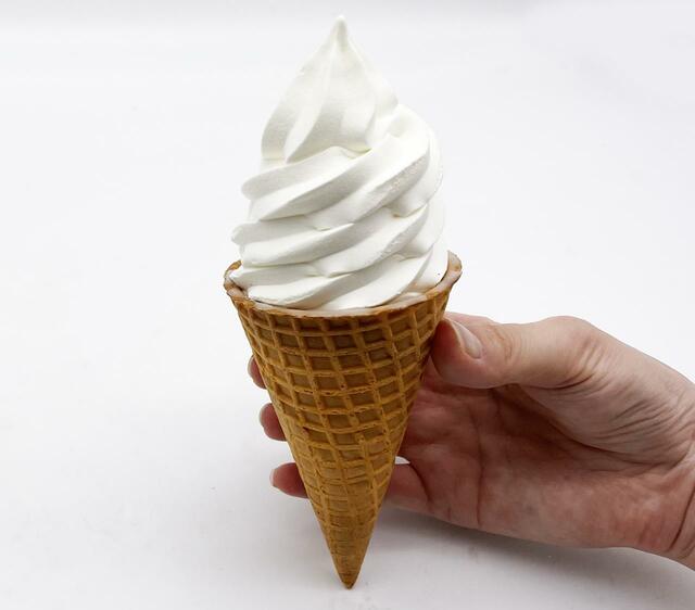 鳥取・岡山の境にある蒜山で育ったジャージー牛から搾られたミルクを使用したアイスで、他社の「ワッフルコーン・バニラアイス」とはワンランク上の味わいを表現しています。