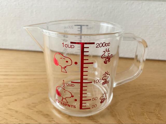 スヌーピーとウッドストックがあしらわれたキュートな「計量カップ 200ml」。