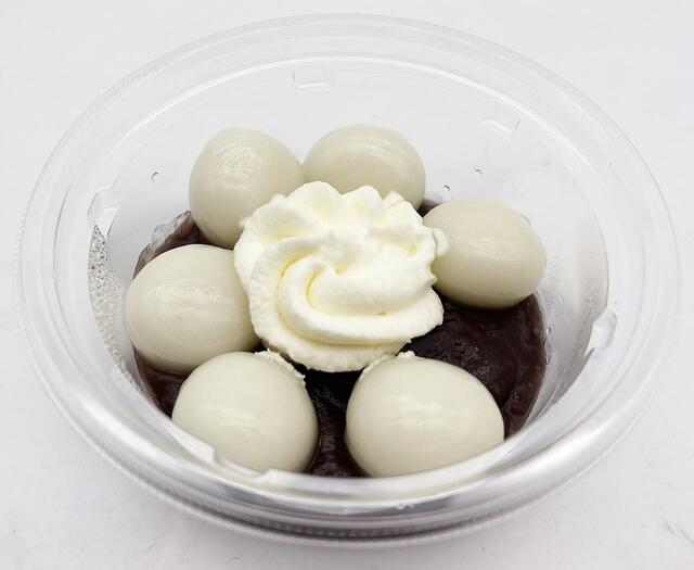 ぜんざい餡の上にちょこんとホイップクリームが乗り、その周囲を白玉が囲んでいます。白玉1個ごとは大き過ぎず、一口でも軽く食べられるサイズです。