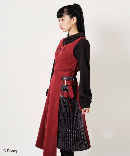 ハートネックでガーリーなアイテムに、ベルトデザインなどのダークな要素が共存するワンピース。