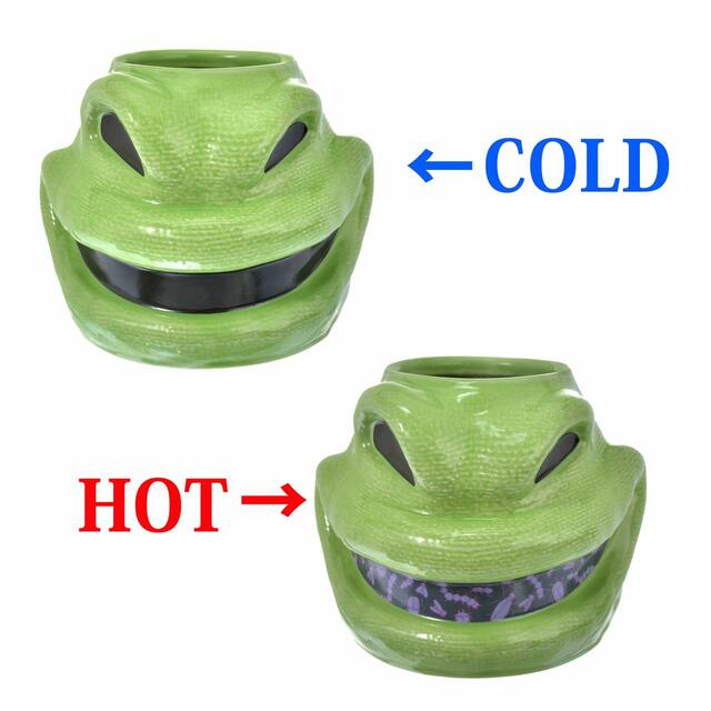 ウギー・ブギーの顔をモチーフにしたマグカップは、温かい飲み物を注ぐと口から虫のアートが浮き上がります。
