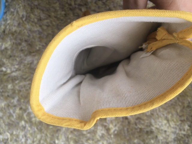 カラーはイエロー一色。サイズはSS、S、フリーとあります。SSサイズは子供にぴったりです。