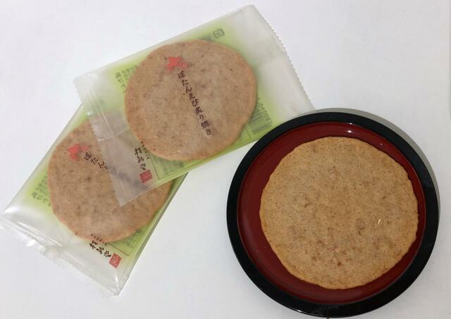 まずは「甘えび炙り焼き」。「炙り焼き」の中で一番薄めに焼き上げられていて、サクッと軽い歯ごたえです。甘えびの香ばしさも感じられる満足度の高い一枚。