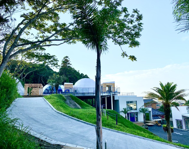 坂道を登って行った先にある「展望スペース」には、プールとサウナが設置されています。