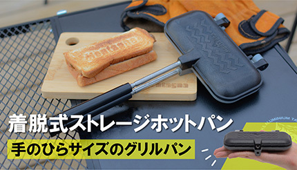 ハックは9月12日~11月13日18時の期間、アウトドアブランド「Montagna(モンターナ)」から、手のひらサイズのグリルパン「着脱式ストレージホットパン」を、クラウドファンディングサイト「Makuake」にて先行予約販売する。