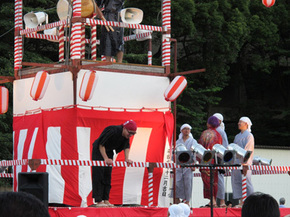 盆踊り会場に行くと中央にやぐらが組まれていた。