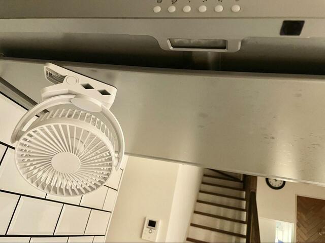 電子レンジの取っ手部分に付ければ、背後から涼しい風を送ってくれるのでお気に入りです。