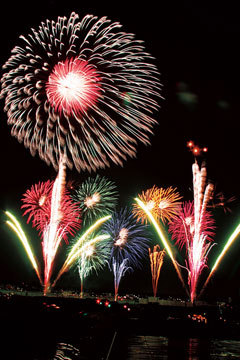 ★【水中】水中花火を実施 ★【海】海辺で行われる ★【音楽】音楽と連動した花火が打ち上がる ★【万発】1万発以上打ち上がる ★【滝火】仕掛け花火(ナイアガラ)実施 ★【競技】花火コンクール(競技会)実施 ★【川湖】川畔や湖畔で行われる