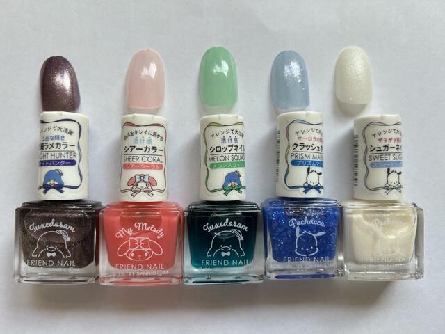 今回は、「フレンドネイル(サンリオネイル)」「ソンプチュー」「GENE TOKYO」の3種類のネイルポリッシュをご紹介します。