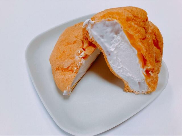 • 【ローソン おぼれクリームのシュー(ホイップ&チョコ)】中央にホイップクリーム、外側にはチョコレートクリーム