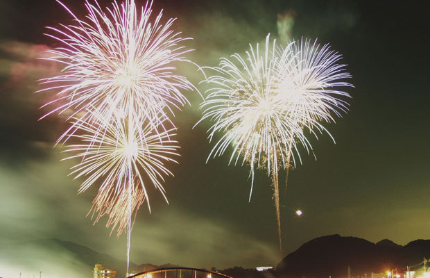 伊豆の国市のイベントの最後を飾る大会。1番の魅力は発射場所との距離の近さ。スターマインの迫力、スピード感や鮮やかさは興奮必至。川沿いに場所を取り、間近で観賞しよう。