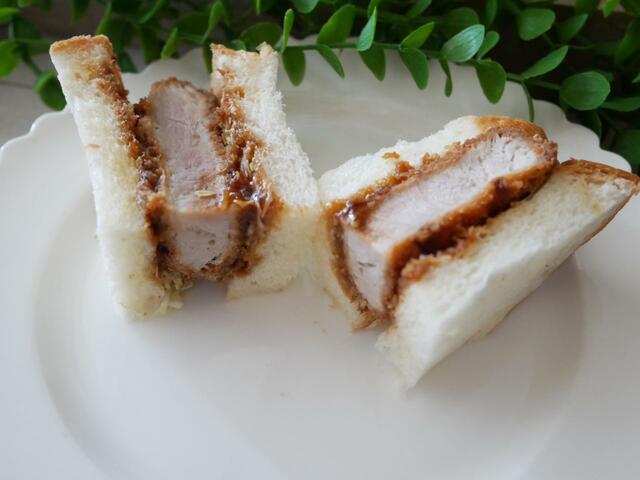 厚めの食パンに、分厚いアンデス高原豚のロースカツを挟んだボリューム満点サンドイッチ。