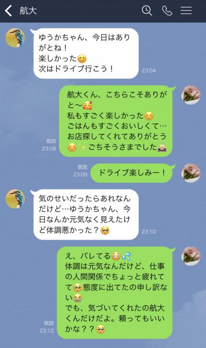 彼女とデートをした日、少し元気がなさそうに見えたので、心配してLINEを送ったんです。