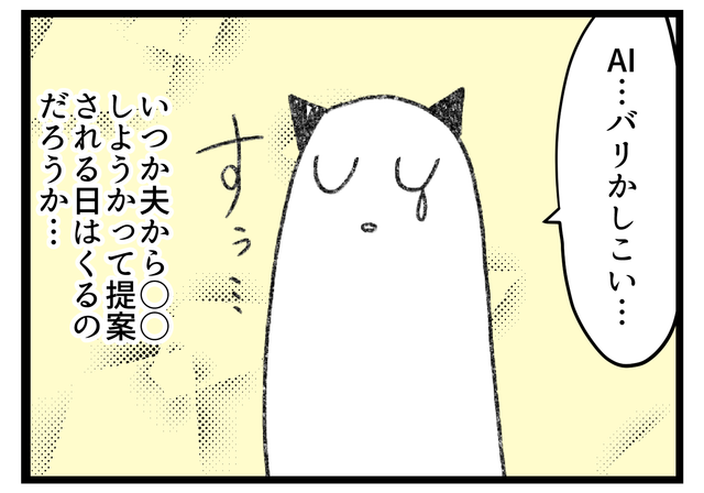 すると「最近はAIでも自分から提案してくるよ」と言われ…。「全くもってその通りじゃん…」と思いました。蓄積されたデータから提案してくれるんですよね…。AIかしこ…。